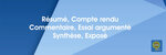 Résumé - Compte rendu, Commentaire, Essai argumenté, Synthèse, Exposé